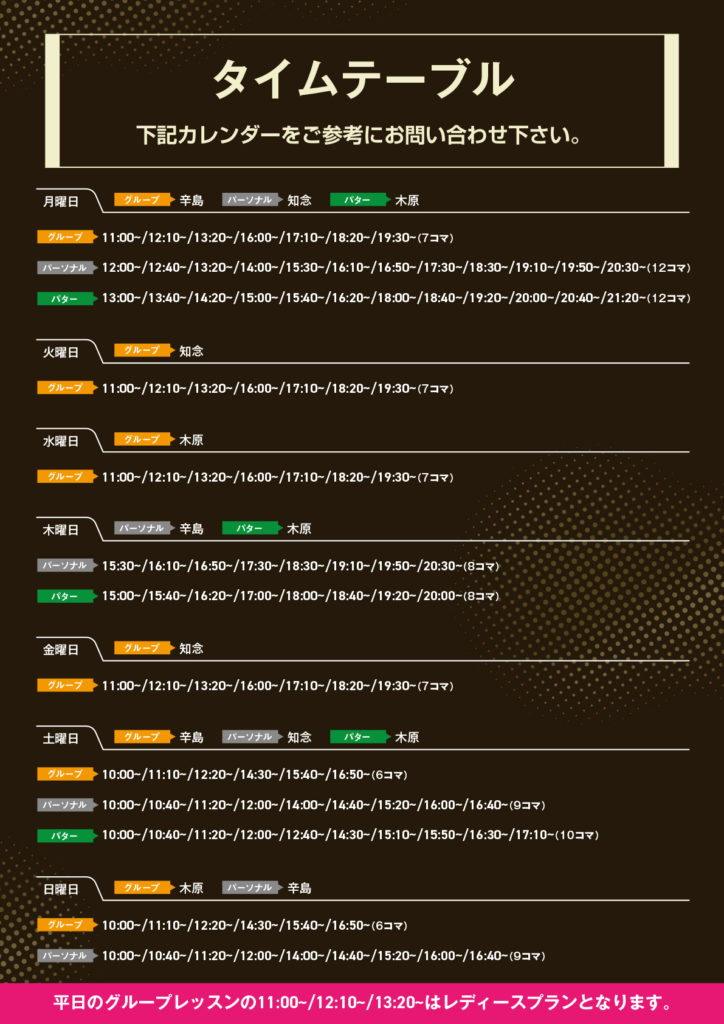 体験レッスンをご希望の方は、こちらのスケジュールからご希望日を選んでお申込みください。